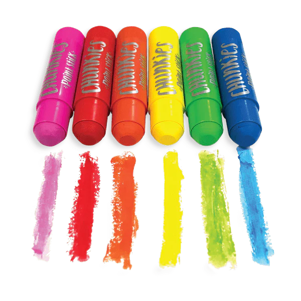 When you want to paint colorful pictures but want to leave the mess behind then it's time to reach for Chunkies Paint Sticks. Chunkies are super easy to use, clean and portable because they're like painting with a crayon. Just uncap, twist and start painting. Chunkies comes in a set of 12 different colored paint sticks each in a thick barreled casing so they're easy for little hands to hold. The paint colors are quick drying and won't smudge, but it's easy to mix colors to make even more colors. It's magic! Care and use recommendations: Keep capped when not in use, to help prevent drying. Cover and protect your workspace. This product may stain some surfaces.